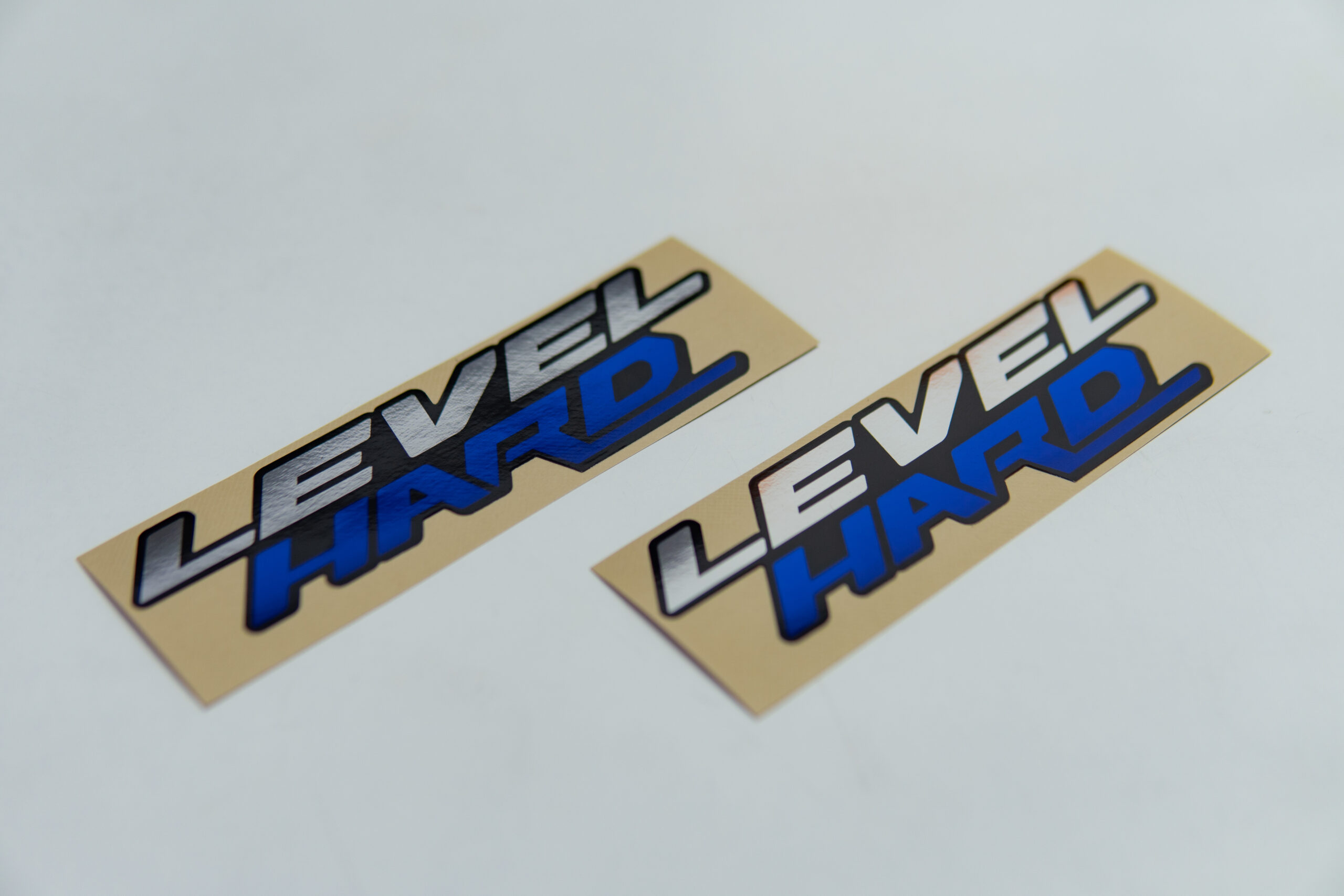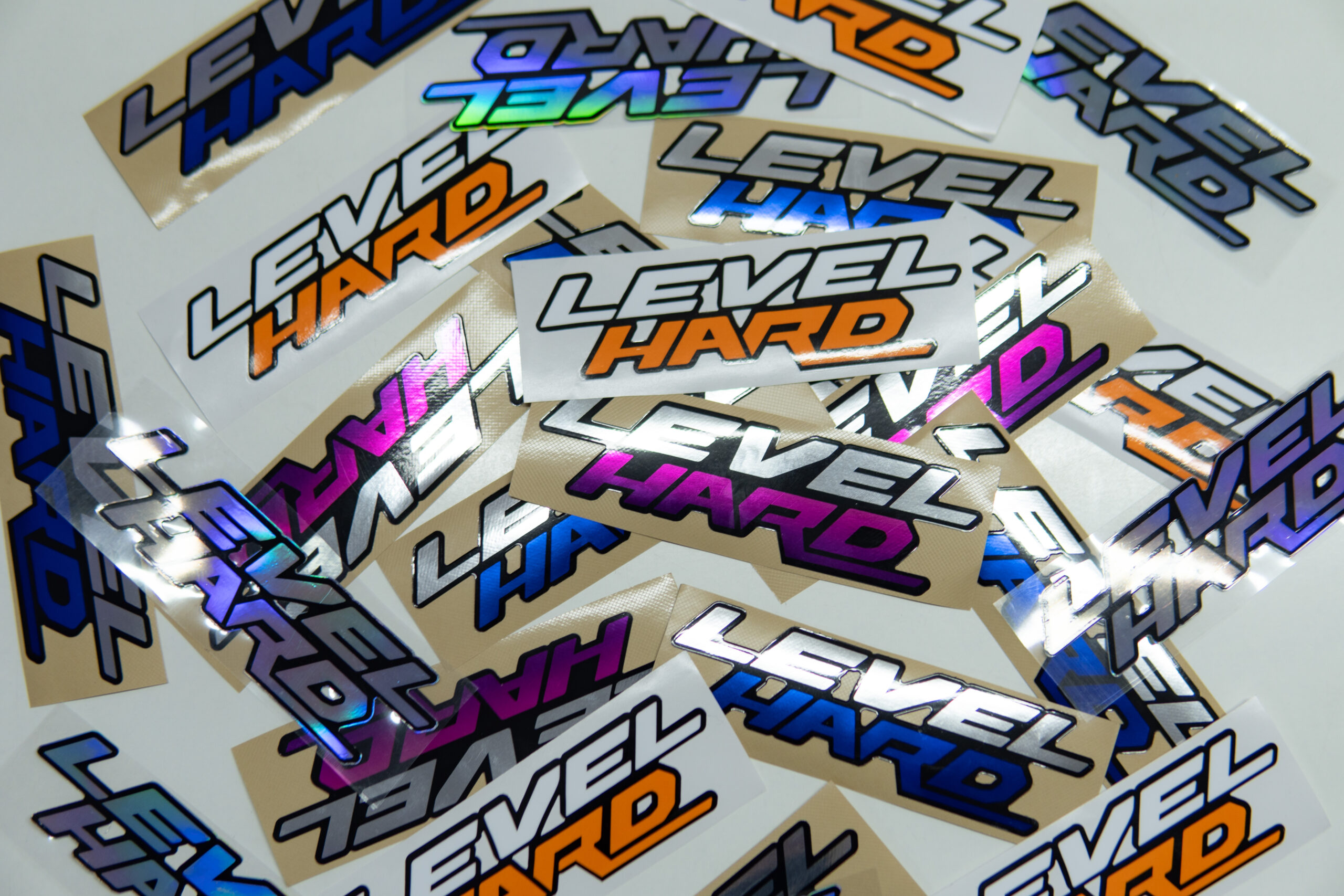 Naklejka klasyczna mała Level Hard dostępna w czterech wariantach.